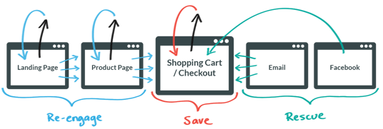 Cart Rocket uses a comprehensive ‘smart’ system, that starts from the very moment a customer visits your site, continues through your product and checkout pages, and then follows them even if they abandon your site – all in an effort to help re-engage their interest, and to motivate them to buy from you.